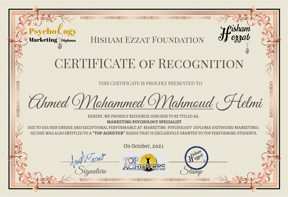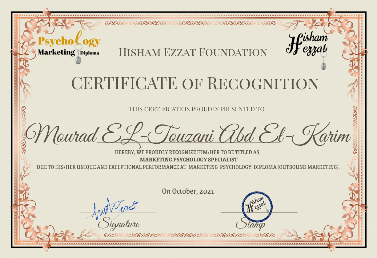 • الحصول على شهادة إجازة Marketing Psychology Specialistعند إنهاء الجزء الأول Outbound Marketing بشرط تجاوز الاختبارات.